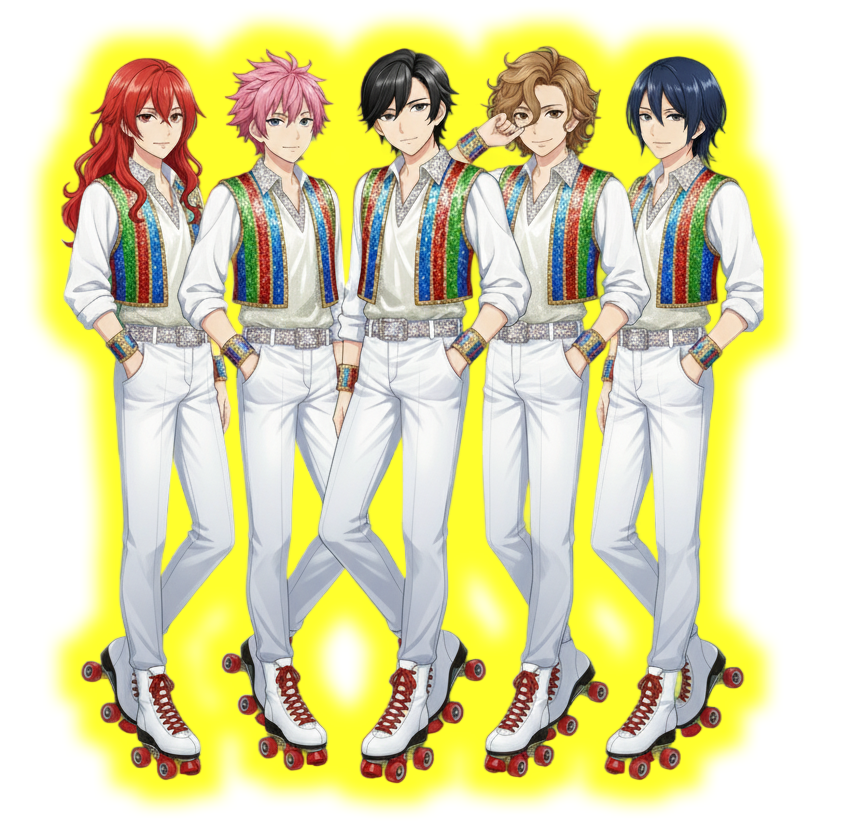 「シャイニングローラーズ」(Shining☆Rollers)は,ナウでヤングな時代の輝きを体現した,若者たちに絶大な人気を誇る5人組アイドルグループ。